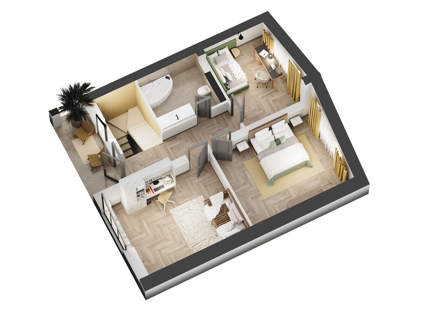 2 этаж комнаты: 12 м2, 19,5 м2, 19,5 м2