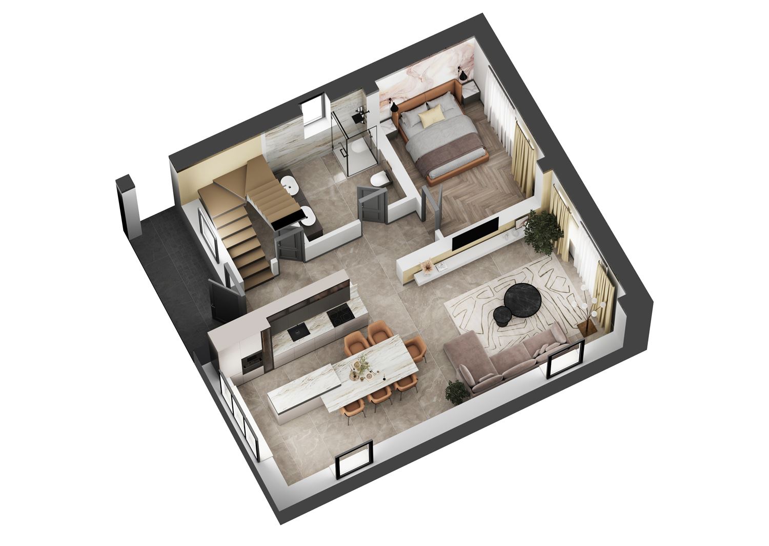 1 этаж: кухня-гостиная 39,5 м2, комната 12 м2