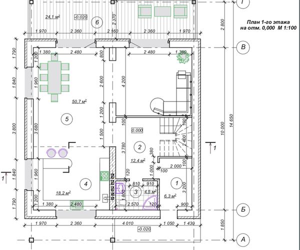 1 этаж: кухня-гостиная 39,5 м2, комната 12 м2