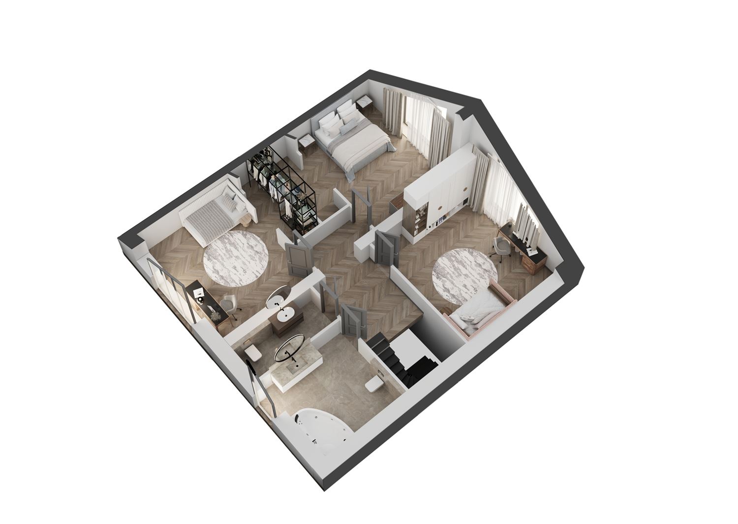 2 этаж комнаты: 19,5 м2, 22,2 м2, 22,2 м2